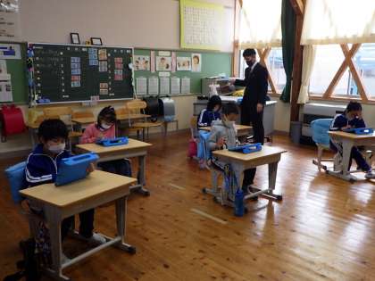 今日は豊田市教育委員会の先生方や指導員の先生をお招きして授業を見ていただきました。2年生は国語「しゅ語とじゅつ語」の授業を行いました。正しく書ける名人、正しく話せる名人になろうと頑張っています。