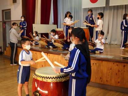 10月26日 太鼓練習 公開日 2021/10/26 更新日 2021/10/26 学校の特色ある活動 朝から盛りだくさんの活動を頑張ってきて迎えた6時間目の太鼓練習。力を振り絞り、一生懸命、練習ができました。