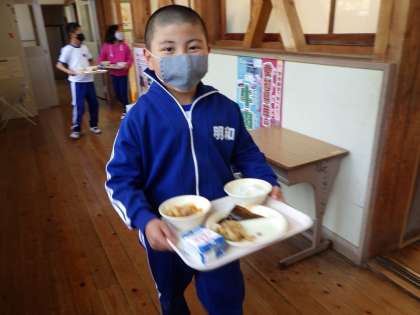 今日来てくださった栄養教諭の先生が、足助の子どもたちの給食の献立を考えてくださっています。給食はバランスよくつくられています。感謝して、もりもり戴いています。