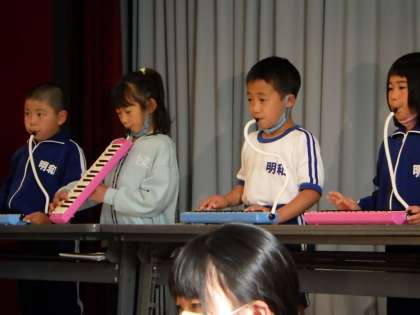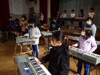 11月5日 全校音楽 公開日 2021/11/05 更新日 2021/11/05 各学年から 全校合奏の楽器の配置や全校合唱の立つ位置を決めました。舞台に立つ子どもたちにスポットライトの光が当たり、それぞれ緊張した表情で本番を意識した練習ができました。