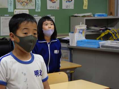 2年教室からきれいな歌声が聞こえました。「朝の会」の「朝の歌」で「希望という名の花を」の練習をしています。