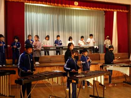 11月12日 学芸会器楽・合唱下見会 公開日 2021/11/12 更新日 2021/11/12 各学年から 3時間目の全校音楽は学芸会の本番と同じように行い、校長先生、教頭先生からアドバイスをいただきました。