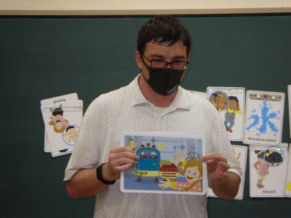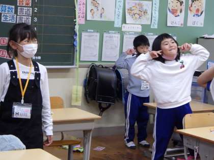 カイル先生と歌って踊って、体の部分の言い方を楽しく覚えました。
