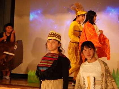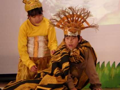 「ライオンキング」を9人で演じます。台詞や動きを確認しながら、最後の練習をしました。