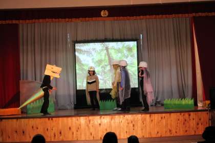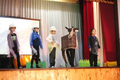 3・4年生の劇は「めいわ時空探偵団」です。明和の歴史をもとに台本から創作しました。時代ごとに場面が転換し、明和の未来も考える壮大な劇でした。