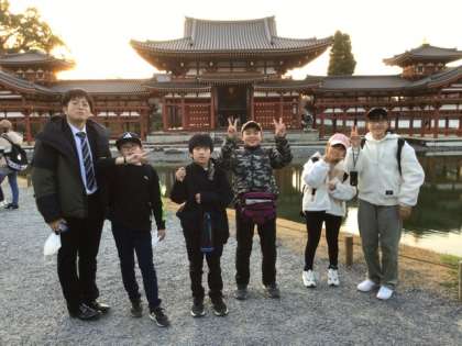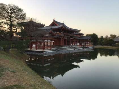 夕陽を背景に平等院鳳凰堂は輝いていました。