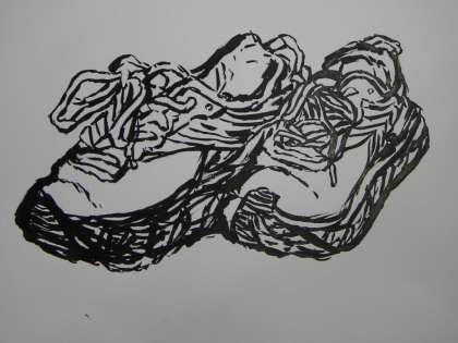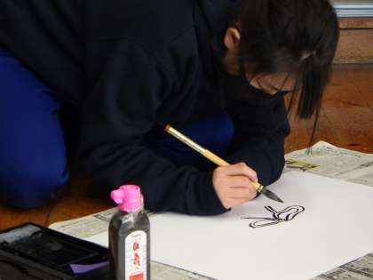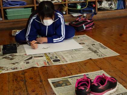ひもぐつを習字の太筆でかきました。集中して2時間で仕上げました。