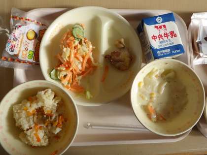 12月23日 クリスマスメニュー 公開日 2021/12/23 更新日 2021/12/23 各学年から 今年最後の給食はクリスマスメニューでした。デザートはチョコタルトと豆乳プリンタルトのセレクトメニューでした。