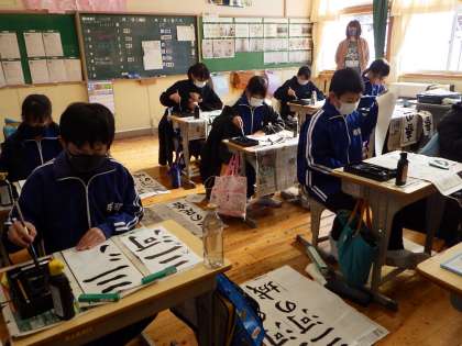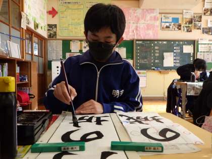 1月7日 書初め大会(5・6年) 公開日 2022/01/07 更新日 2022/01/07 各学年から 5年生は「春の足音」、6年生は「三河の城」と書きました。さすが高学年、たいへん上手に書けました。