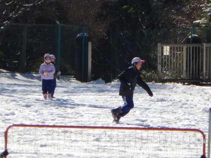 休み時間はもちろん雪遊びです。キャーキャーと賑やかな声が運動場に響きました。