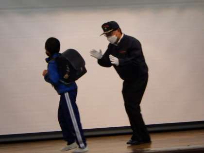 1月18日 子どもの防犯教室 公開日 2022/01/18 更新日 2022/01/18 学校の特色ある活動 「不審者に出合ったらどうすればよいか」を教わりました。防犯ブザーの効果、助けての声、寝転がってじたばた、一気に逃げるなど、命を守るために勇気を出して行動することの大切さを学びました。