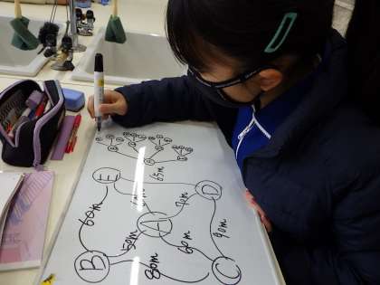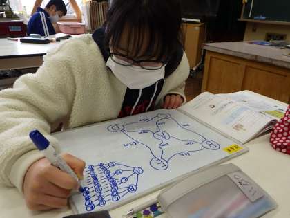 1月28日 6年算数 公開日 2022/01/28 更新日 2022/01/28 各学年から 「場合を順序よく整理して」の学習で、略地図を見て散歩コースが何パターンできるかと道のりが最も短くなるコースを考えました。