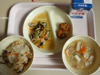 コロナ感染者が増える中、黙食は続きます。給食週間です。おいしくいただきました。