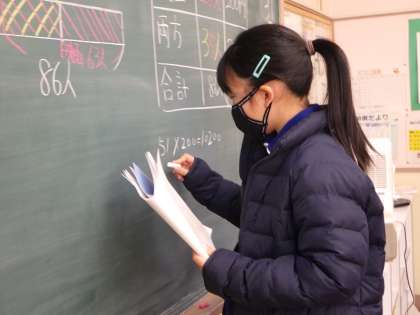 1月31日 6年算数 公開日 2022/01/31 更新日 2022/01/31 各学年から 「場合を順序よく整理して」の学習で、子ども会で出かけた際に必要な入場料の合計を考えました。「20,700円」の正解を導くいろいろな方法に気付きました。