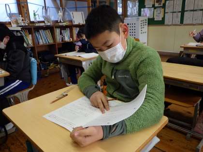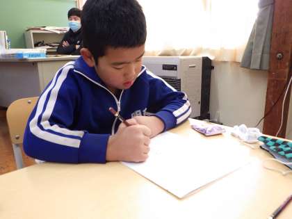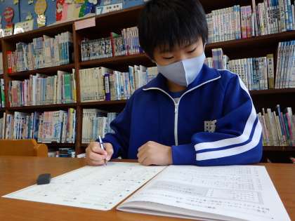今日は算数の学力検査を行いました。時間いっぱい、一生懸命取り組みました。