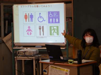 2月9日 3・4年総合 公開日 2022/02/09 更新日 2022/02/09 各学年から 3・4年生は総合的な学習の時間に福祉について学んでいます。今日は外部講師を招き、ユニバーサルデザインについて考えました。すべての人が暮らしやすくなるために身の回りにさまざまな工夫があることに気付きました。「ランチルーム」を表すピクトグラムを作ってみました。