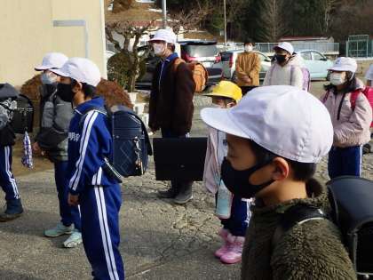 2月9日 安全に登下校を 公開日 2022/02/09 更新日 2022/02/09 学校の特色ある活動 子どもたちは雪道を登下校します。通学団ごとに並び順を守って安全に登下校ができるように担当の先生が呼び掛けました。