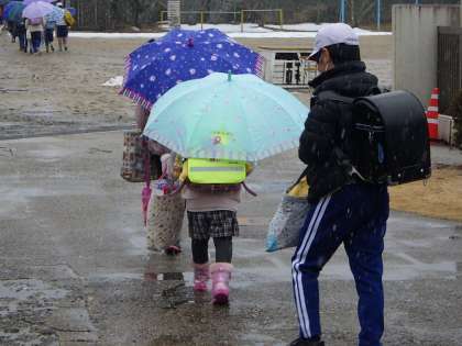 下校時には雪に変わっていました。今週もよく頑張りました。よい三連休を。