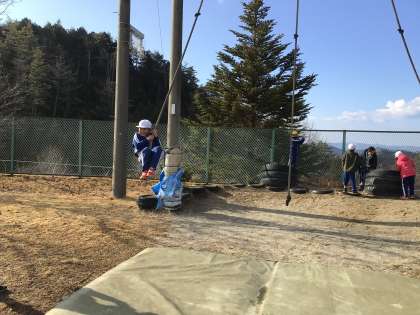 1、2年生が仲良く遊んでいます。ターザンロープは人気があります。