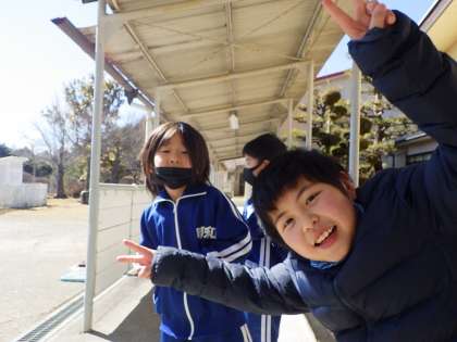 集合場所に早く集まった子たちが楽しそうに遊びます。