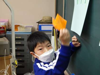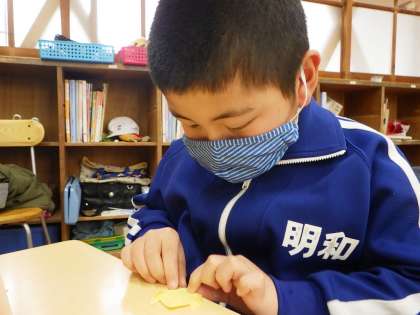折り紙でチューリップを折りました。一つ一つていねいに、卒業式の日に飾りたいと、心を込めてつくります。