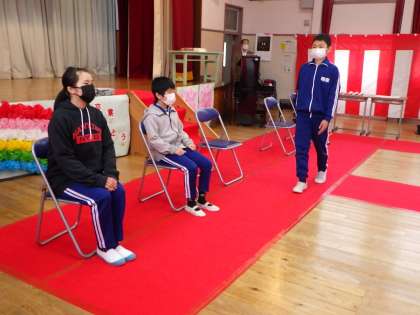 3月15日 卒業式予行練習 公開日 2022/03/15 更新日 2022/03/15 学校行事 コロナウイルス感染症予防のため集まって練習する機会が少ない中、予行練習を行いました。式の流れがわかりました。国歌や校歌は静聴、別れの言葉は動画視聴、今できることを模索し、行います。