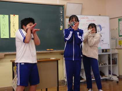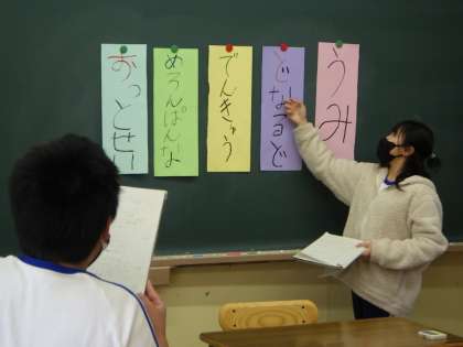 5年生のクイズの答えの一文字目をつないで読むと…「おめでとう」でした。