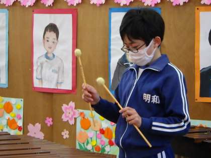 「6年生の時間」はお礼の気持ちを込めて5人で「トルコ行進曲」を演奏しました。心温まるすてきな活動ができました。