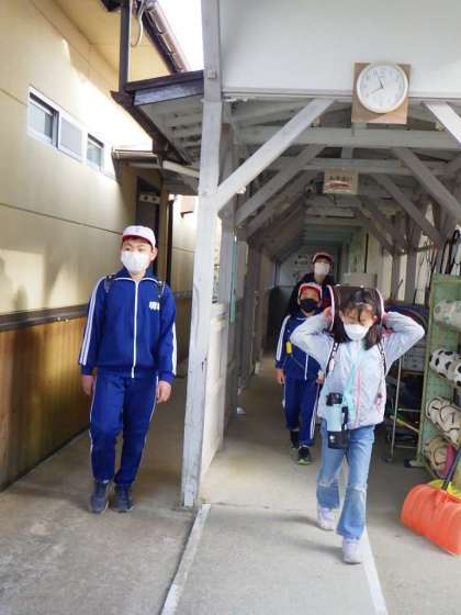 明日は卒業式です。6年生にとって通学団で登下校する最後の日です。毎日通い続けて見慣れた風景を、今日はどんな気持ちで見ながら、歩いたでしょうか。