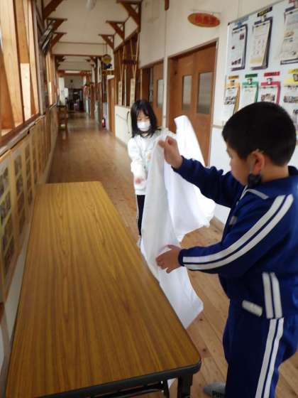 1〜5年生が力を合わせて、卒業式の会場準備や5・6年教室の飾り付けをしました。最後の登校日が6年生の心に残りますように。