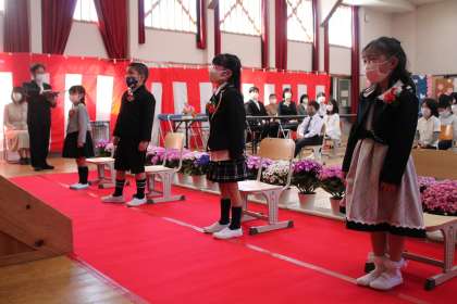 4月6日、穏やかな天候の下、令和4年度入学式・始業式を行いました。新入生(4名)と2〜6年生(17名)合わせて21名が新たなスタートを切りました。