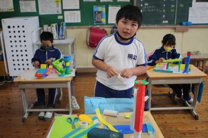 3・4年図工「コロコロガーレ」 公開日 2022/06/16 更新日 2022/06/16 各学年から 6月15日(水)に3・4年生は図工で「コロコロガーレ」を作りました。それぞれ工夫をして自分だけのコースを作り上げました。みんなに作品を紹介したあと、友達の作った作品で遊びました。