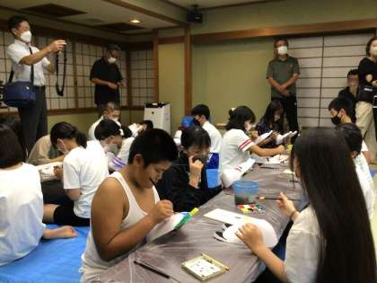 修学旅行5 公開日 2022/09/12 更新日 2022/09/12 学校行事 夕食を済ませ、入浴後に絵付体験をしました。 個性あふれる素敵なお面ができました。 どんな作品に仕上がったのか楽しみにしていてください。 21時を回り、就寝準備に入りました。4人、みんな元気です。 しっかり休んで、明日に臨みたいですね。
