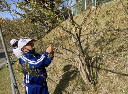 4月22日(金)に3・4年生がブルーベリー園の整備を行いました。これから夏にかけてたくさんのブルーベリーが実るよう一生懸命、作業に取り組みました。