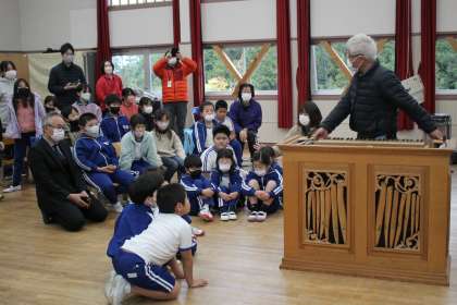 豊田市コンサートホールアウトリーチ事業 公開日 2022/12/13 更新日 2022/12/13 各学年から 12月7日(水)に豊田市コンサートホール主催のアウトリーチ事業が集会室で行われました。小型のパイプオルガンを持ってきていただき、プロの方の演奏を聴きました。子どもたちは普段聞くことのない不思議なパイプオルガンの演奏に聴き入っていました。
