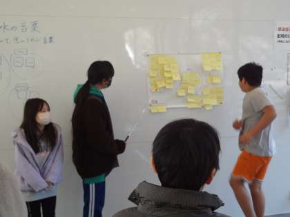 5・6年生 校外学習(自然観察の森) 公開日 2023/02/17 更新日 2023/02/17 各学年から 17日(金)に高学年が豊田市自然観察の森を訪れ、校外学習をしました。前半はグループで水に関連する言葉を付箋にたくさん書き、自分たちの生活において、どのような形で水とかかわっているのかをまとめ、発表をしました。後半ではゲームを通して、動物が絶滅してしまうメカニズムについて学びました。生命と環境が密接にかかわっていることを感じる良い機会になりました。