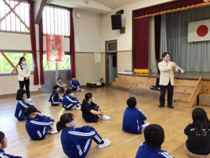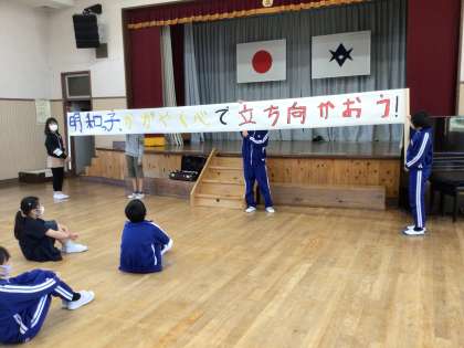 5月1日(月)に全校集会がありました。先生からのお話では、先生がトランペットを披露しました。好きなものに取り組むことの楽しさを子どもたちに伝えました。そして高学年が運動会のテーマを全校に向けて発表しました。今年の運動会のテーマは「明和っ子、かがやく心で立ち向かおう!」です。よろしくお願いします。
