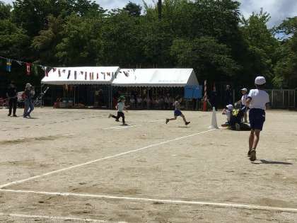 5月20日(土) 明和学区運動会2 公開日 2023/05/20 更新日 2023/05/20 学校行事 全校児童による徒競走に始まり、幼児のかけっこ、親子種目「両手を合わせて背中を合わせて」と熱戦が繰り広げられています。 第3回までの得点は、4対0で白組がリードしています。