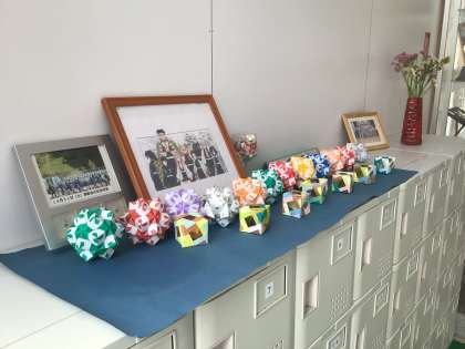 支えてもらっています 公開日 2023/06/06 更新日 2023/06/06 校長室から 明和小学校には2人の公務手さんがいます。毎日の給食の準備片付けだけでなく、校舎内外の環境整備を日々行なってくれています。 中根さんは、プール開きに向けてプールサイドの汚れを落としてくれています。 いづみさんは、正面玄関に新作の色紙による手芸作品を飾ってくれました。