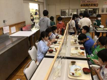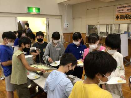 6月23日(金) キャンプ15 公開日 2023/06/23 更新日 2023/06/23 学校行事 全体写真を撮影し、最後の食事(昼食バイキング)を班のみんなと食べました。 残すところは、最後の班活動と退所式です。