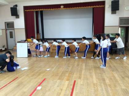 7月3日(月) 全校朝会 公開日 2023/07/03 更新日 2024/02/06 校長室から 今日も暑くなりそうです。 全校朝会では、浅井先生から「七夕」の話がありました。 日本、中国、韓国、ブラジル、それぞれの国の七夕について教えてもらいました。 その後、ミニ全校お別れ会をしました。 おおきなかぶを引っ張った結果は?