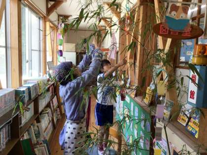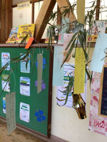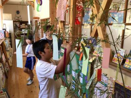 飾り付けをし、願い事を書いた短冊を飾り始めました。