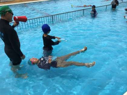 ペットボトルをお腹につけて、仰向けになってぷかぷか浮くことができれば合格です。