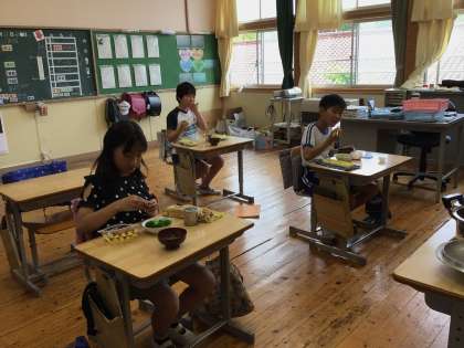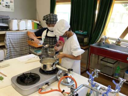 7月18日(火) 調理実習(5・6年) 公開日 2023/07/18 更新日 2023/07/18 各学年から 家庭科の調理実習で「ゆで野菜と味噌汁」を作りました。 野菜を切って、ゆでて、ゆで野菜はそれぞれオリジナルのドレッシングでいただきました。 味噌汁は、煮干しの出汁に大根、油揚げ、ねぎの具が入り、合わせ味噌の味付けでいただきました。 給食の後の試食は? でも、いっぱい食べました。
