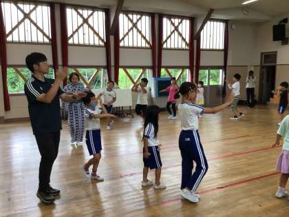 7月19日(水) あかだわ夏祭り音頭練習会 公開日 2023/07/19 更新日 2023/07/19 学校の特色ある活動 講師さんを迎えて3回目の練習会でした。 あとは「赤田和の夕べ」本番に向けて、ということになります。 掛け声はなかなかのものです。