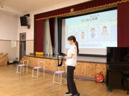 保健指導では、「睡眠の大切さ」について、「すいみん列車」の話を聞きました。4つの駅に停まることが大切です。 【詳しいことが知りたい方は、養護教諭までお尋ねください。】
