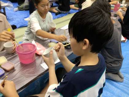 夕食後の絵付け体験