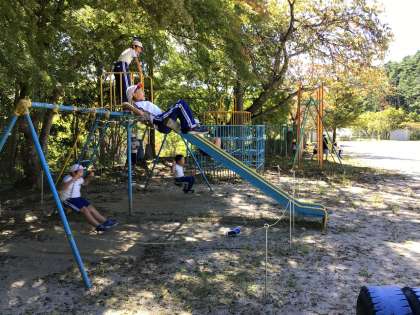 9月29日(金) 元気いっぱい「元気タイム」 公開日 2023/09/29 更新日 2023/09/29 校長室から 今日も日差しが強く、WBGTが28度を超えました。 そんな中でも子どもたちは外(日影)で元気よく遊んでいます。 元気タイムには、くつ飛ばしをしている姿が見られました。