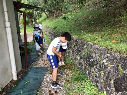 10月2日(月) 栗ひろい(低学年) 公開日 2023/10/02 更新日 2023/10/02 学校行事 理科室の東側の斜面に栗の木があります。 3時間目の生活科の時間に1・2年生が栗ひろいをしました。 数はあまりありませんでしたが、くつで踏みつけながら工夫して栗の実をとりました。 さてこの後どうしましょう?