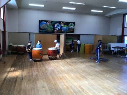 長めの休み時間になると、集会室から太鼓の音が聞こえてきます。